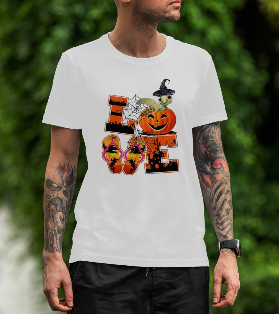 Halloween Love Turtle Pumpkin Spider Web Flip Flops T-Shirt