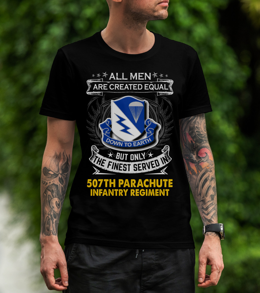 All Men Are Created Equal Down To Earth 507th Parachute Infantry Regiment T-Shirt