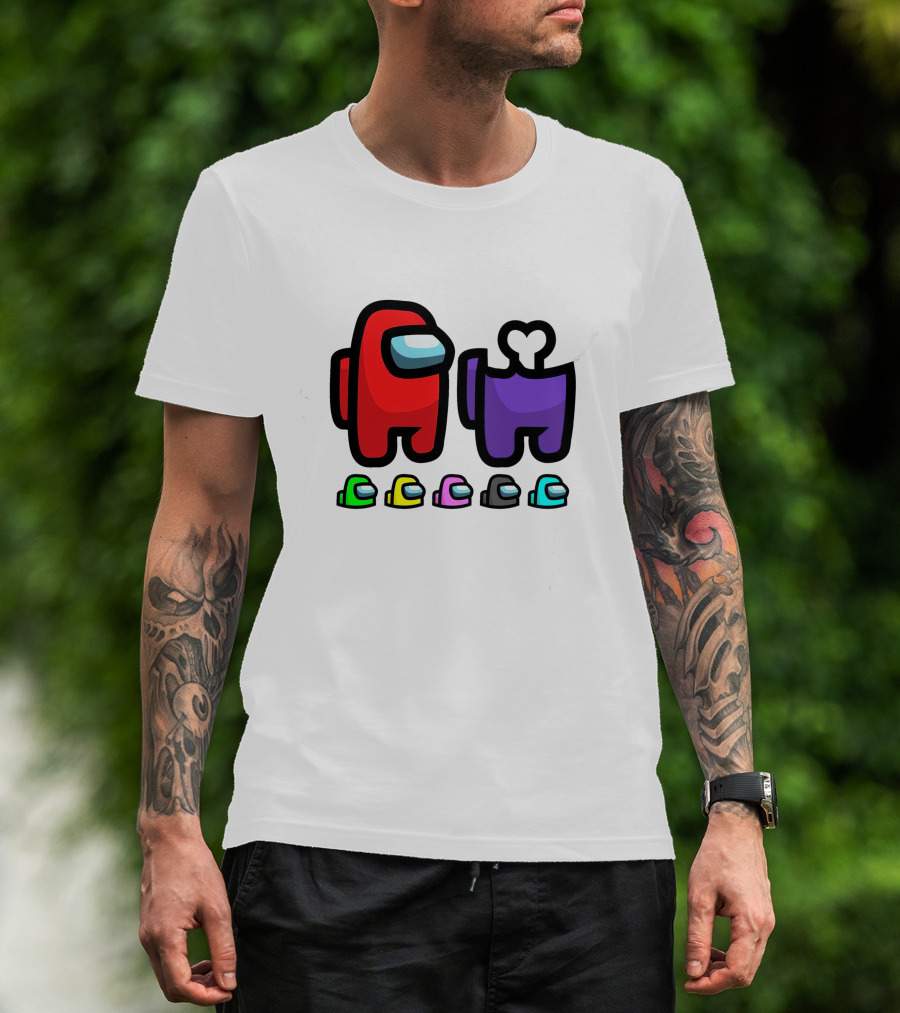 Among Us Crewmates And Dead Body Colors Red Purple Green Blue Yellow Pink Black T-Shirt