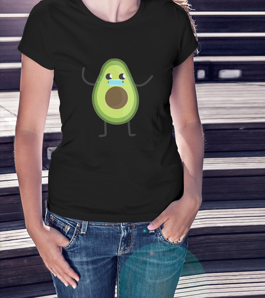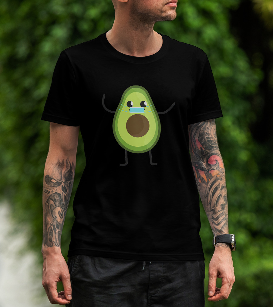 Avogato Avocado Wearing Mask Cute Fruit Character T-Shirt