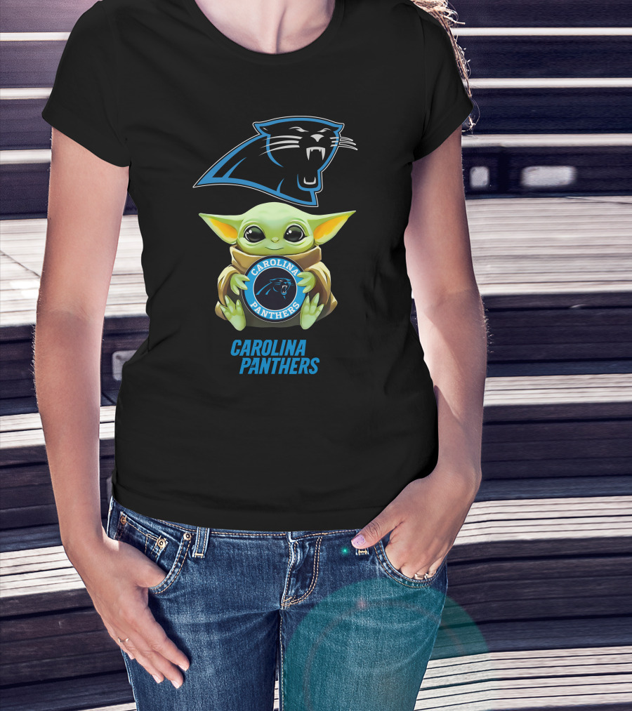 Baby Yoda Holding Carolina Panthers Emblem T-Shirt