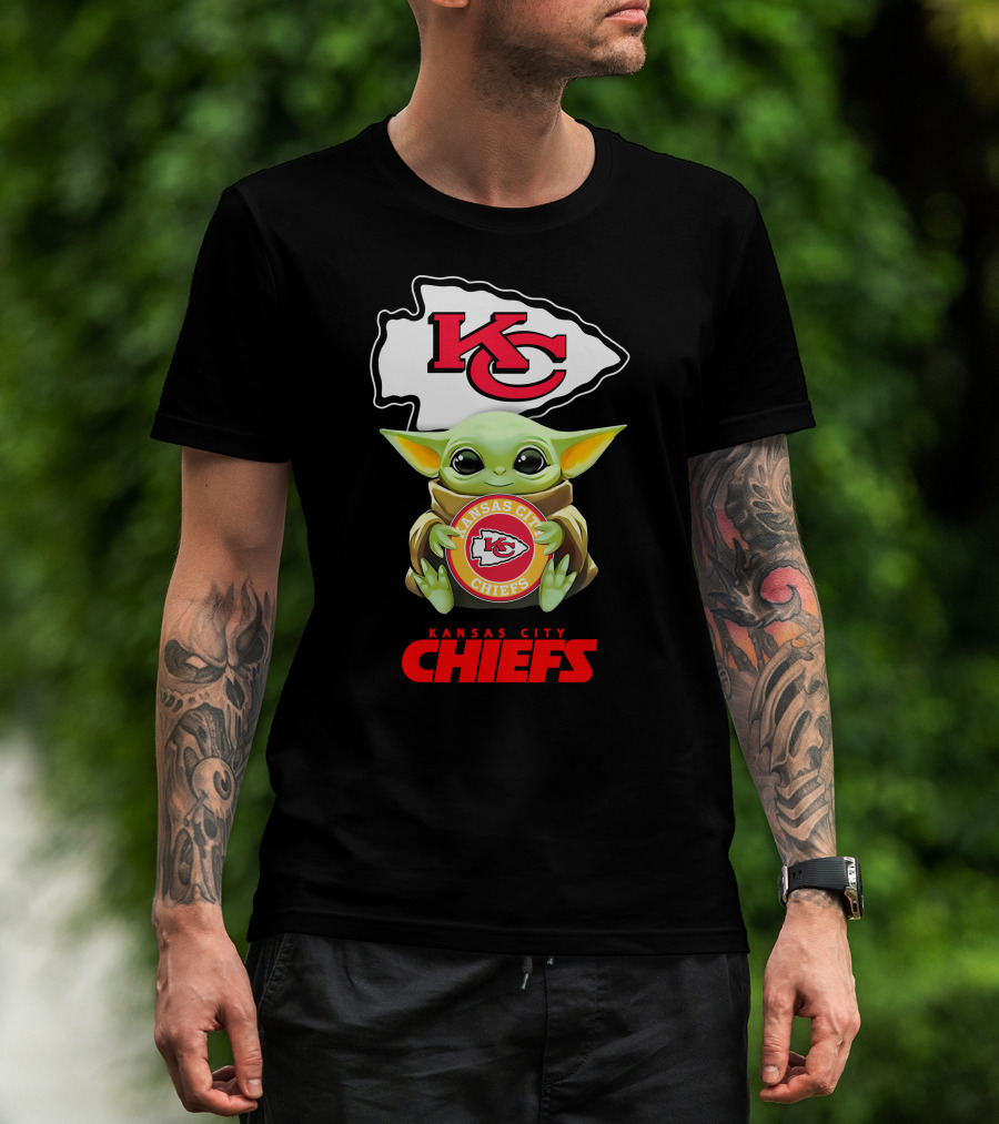 Baby Yoda Holding Kansas City Chiefs Emblem With KC T-Shirt