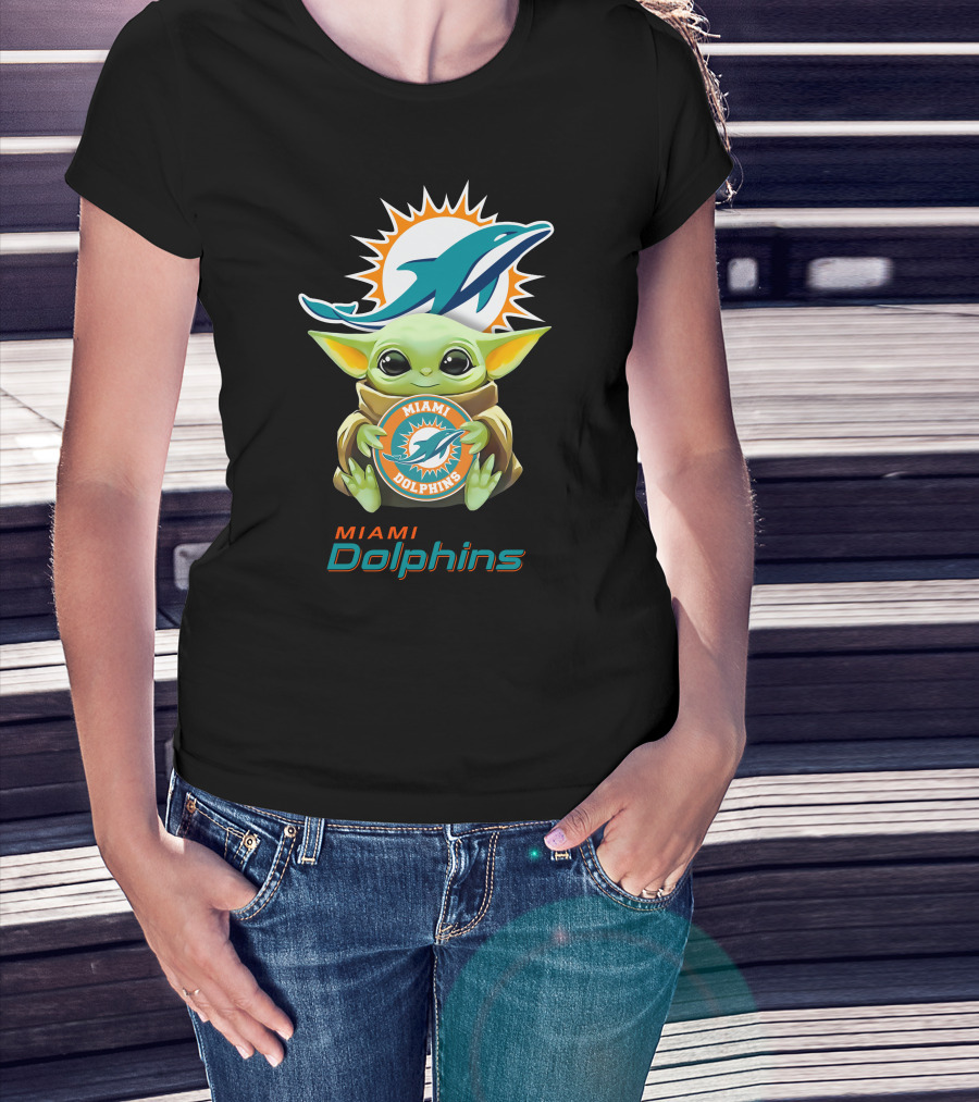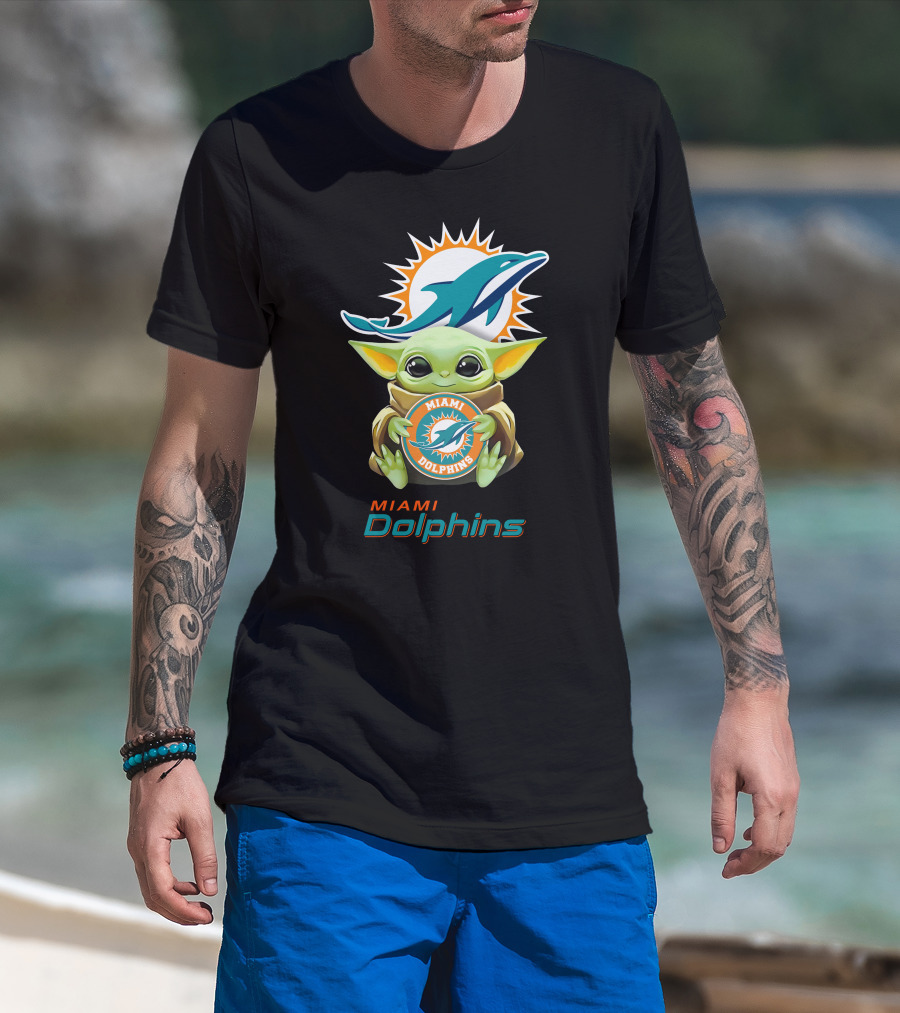 Baby Yoda Miami Dolphins Football Fandom Collaboration T-Shirt