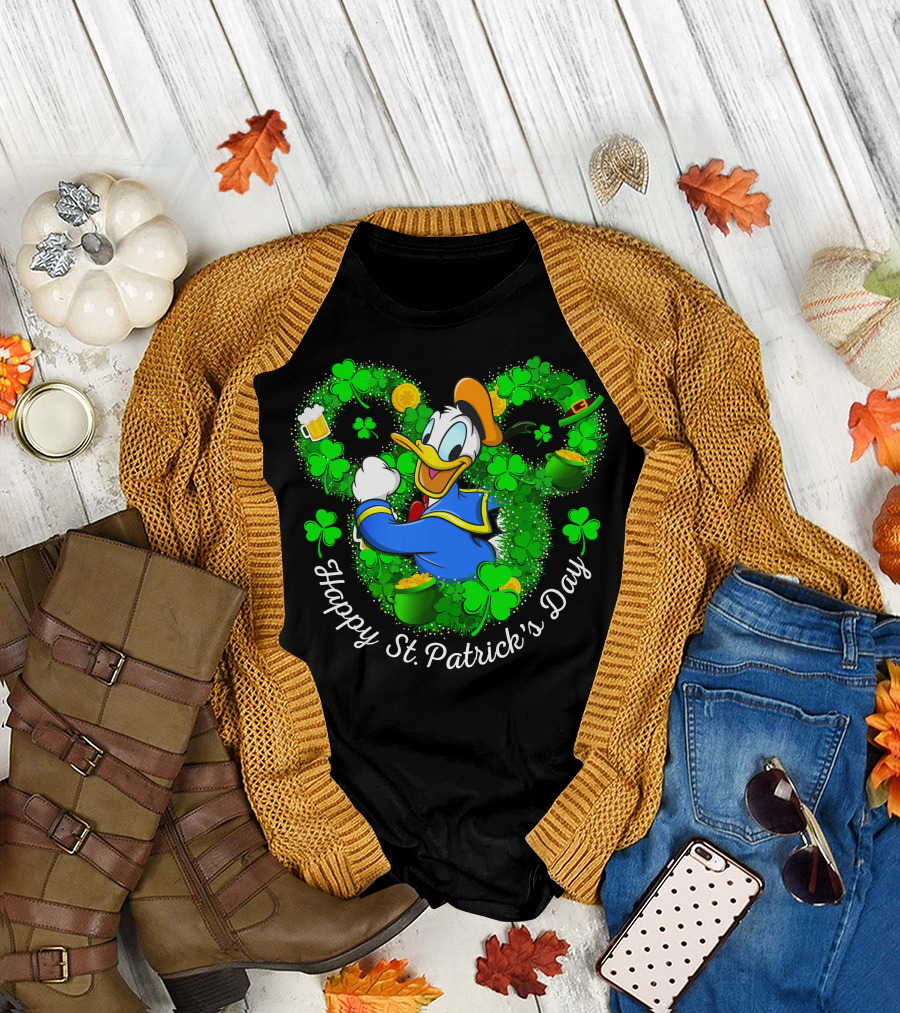 Happy St. Patrick's Day Donald Duck Shamrocks And Gold T-Shirt