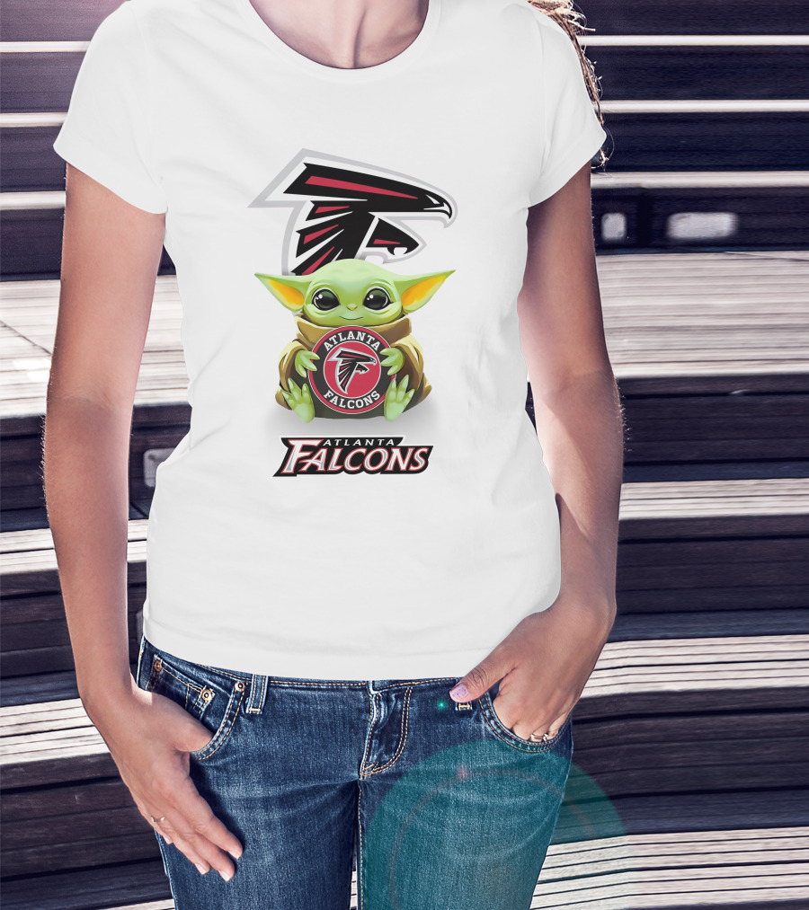 The Baby Yoda Hugging Atlanta Falcons Football Emblem T-shirt is designed for everyday wear and a consistent fit. Fabric is pre-shrunk ring-spun cotton with durable stitching. See the size chart below for exact measurements.