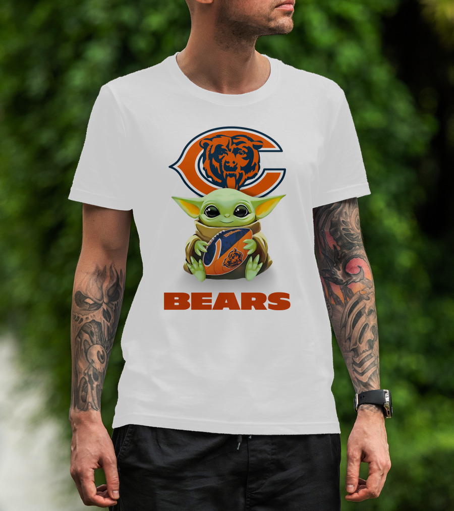 The Baby Yoda Hug Chicago Bears Football Bears T-shirt is designed for everyday wear and a consistent fit. Fabric is pre-shrunk ring-spun cotton with durable stitching. See the size chart below for exact measurements.