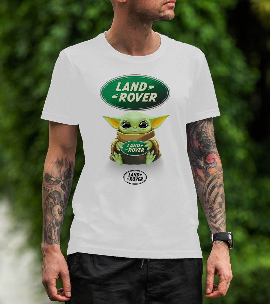 The Baby Yoda Land Rover Green Logo Hug T-shirt is designed for everyday wear and a consistent fit. Fabric is pre-shrunk ring-spun cotton with durable stitching. See the size chart below for exact measurements.
