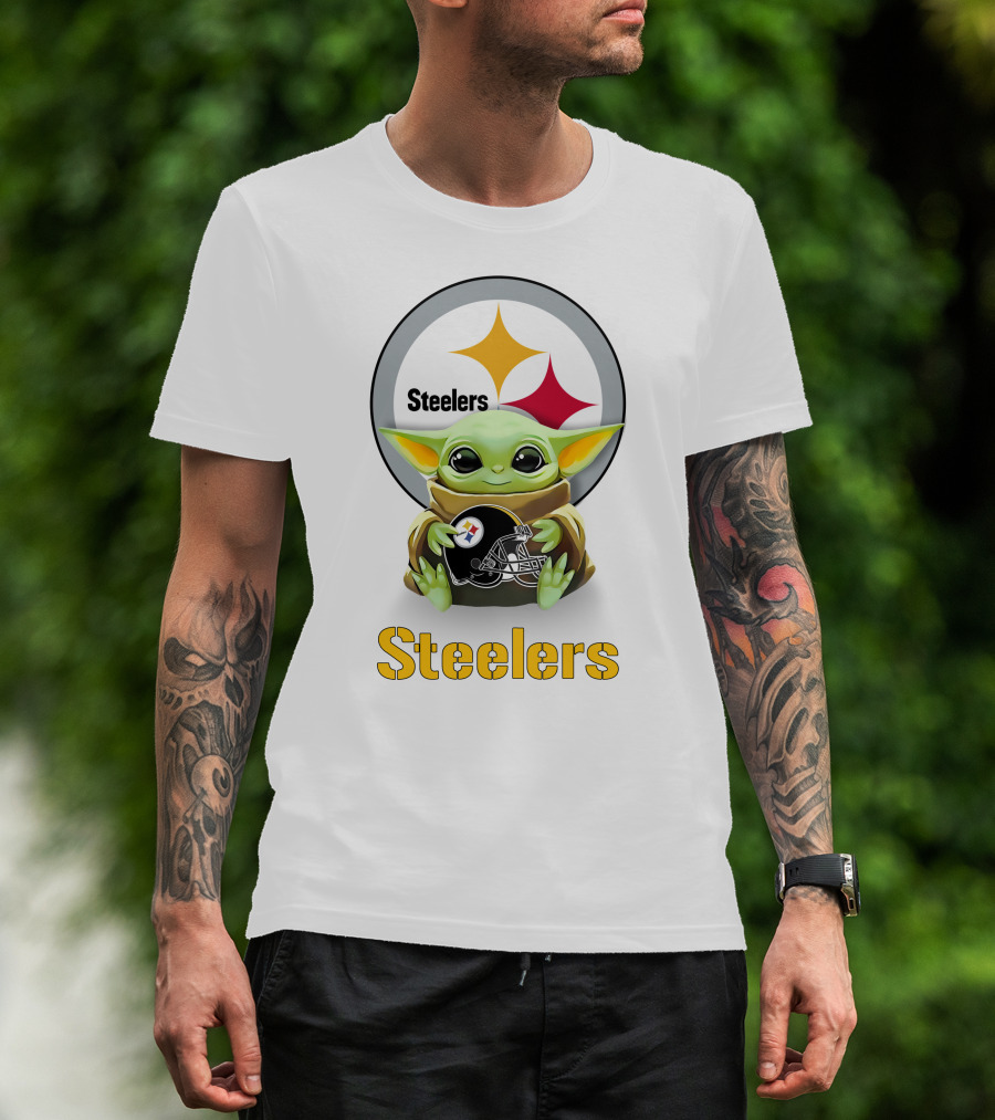Steelers Baby Yoda Holding Pittsburgh Helmet T-Shirt