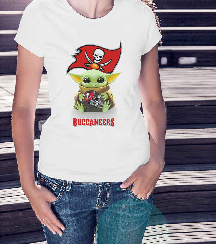 Tampa Bay Buccaneers Baby Yoda Hugging Helmet NFL Team Flag T-Shirt
