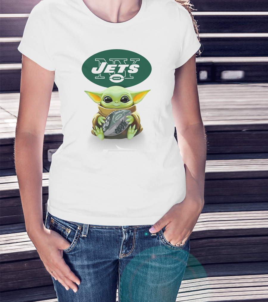 Star Wars Baby Yoda Hug New York Jets Football T-Shirt