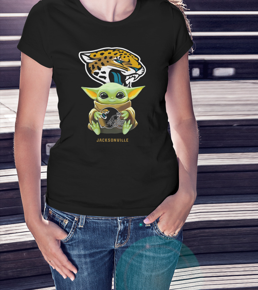 Grogu Holding Jacksonville Jaguars Football Helmet With Team T-Shirt