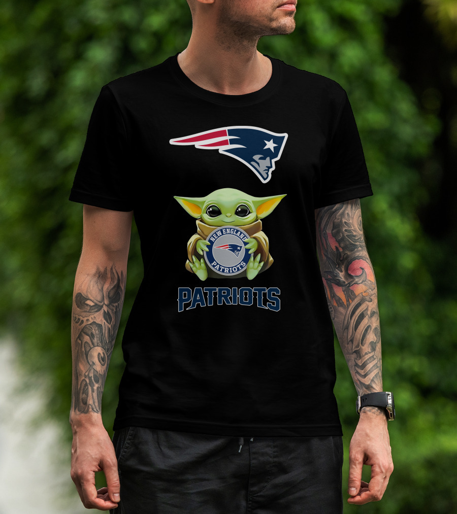 Grogu Embracing New England Patriots Logo With Mascot And Team Name T-Shirt