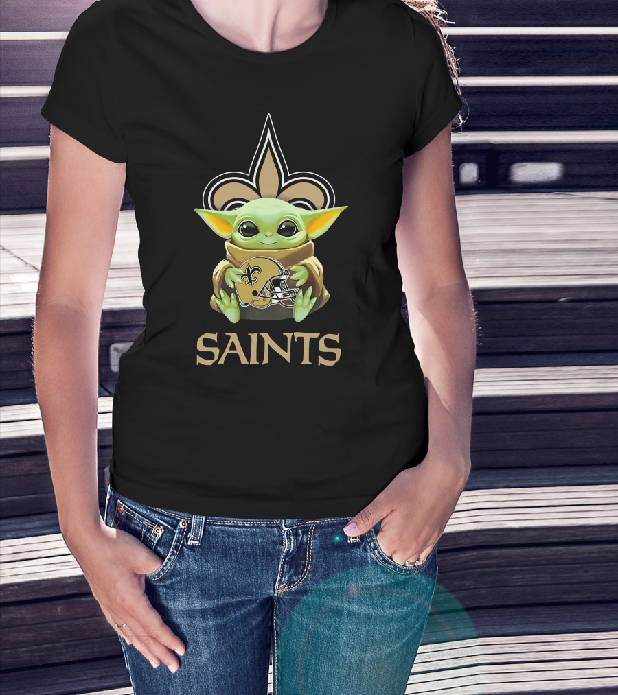 Grogu Saints Helmet New Orleans Fleur-de-Lis T-Shirt