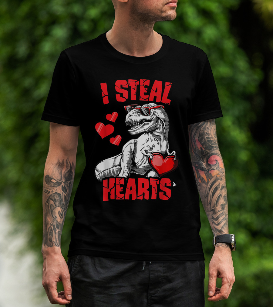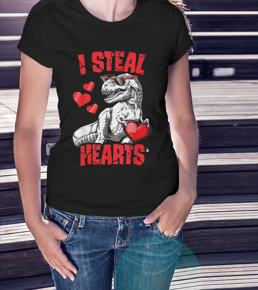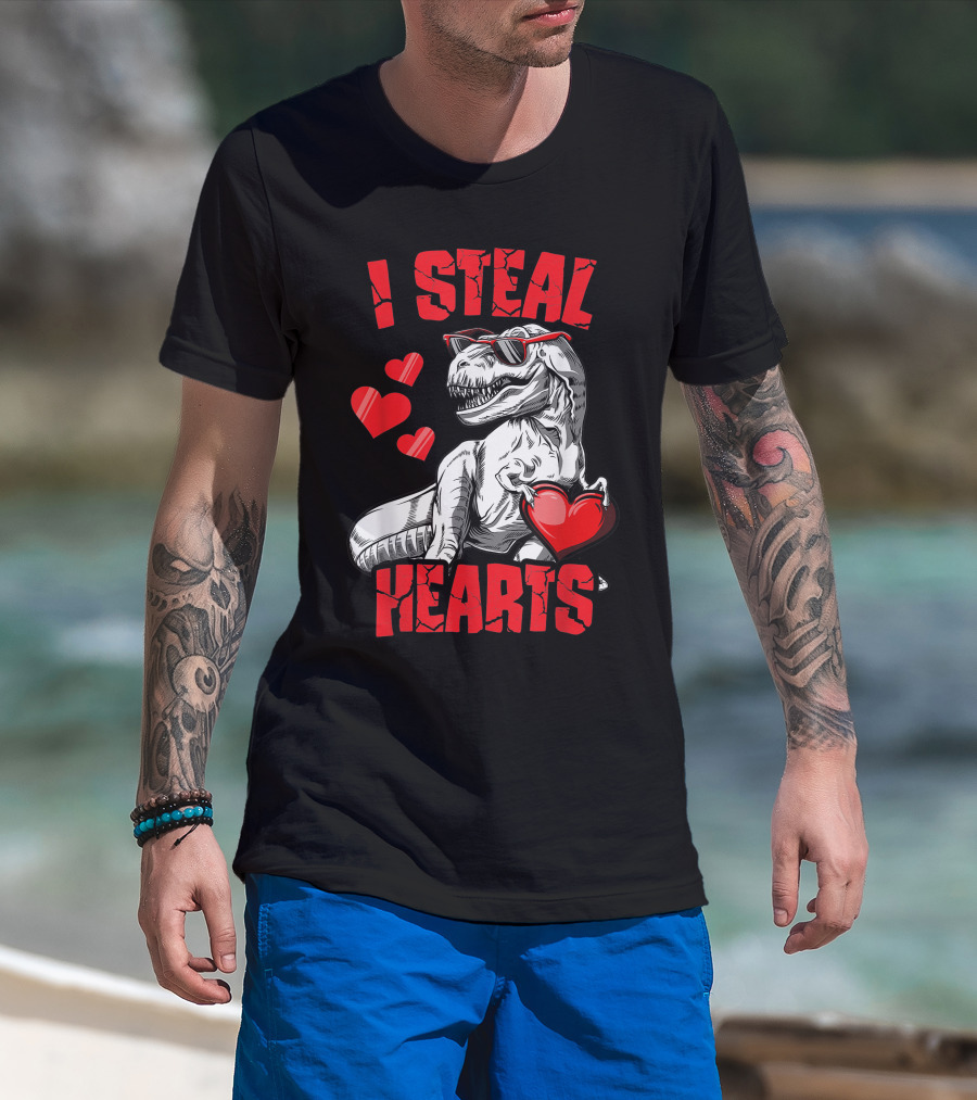 Valentines Day Kids Dinosaur T-Rex Lover I Steal Hearts T-Shirt