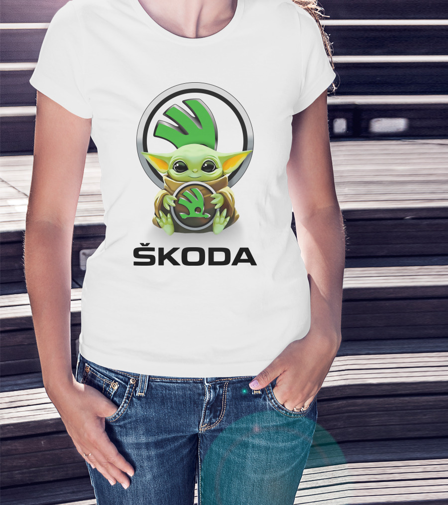 Grogu With Škoda Emblem Hugging Icon With White Background T-Shirt
