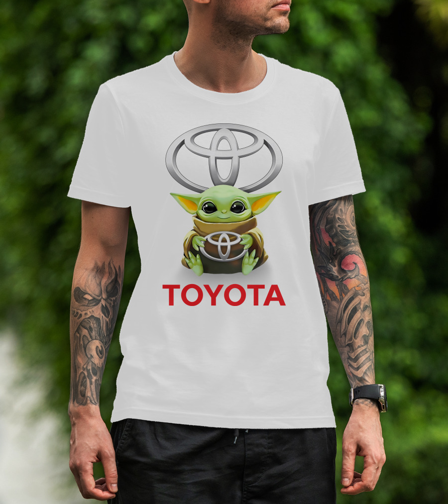 The Grogu Hug Toyota Logo White T-shirt is designed for everyday wear and a consistent fit. Fabric is pre-shrunk ring-spun cotton with durable stitching. See the size chart below for exact measurements.