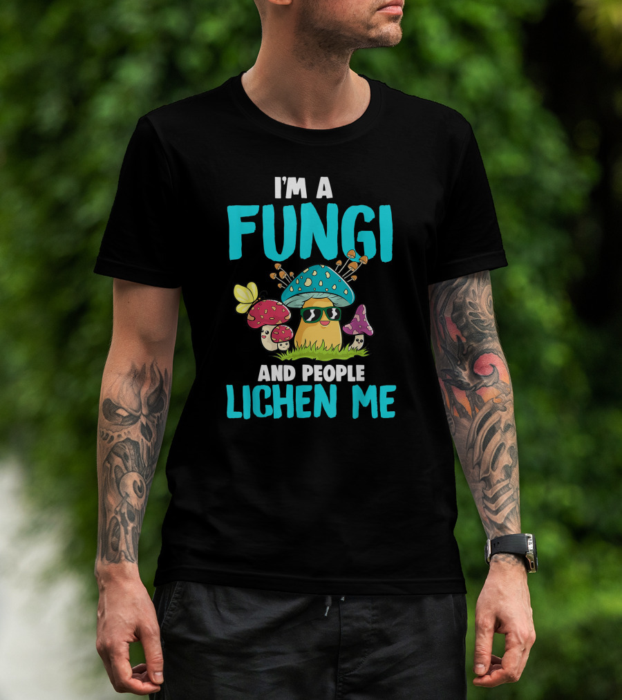 The I'm a Fungi and People Lichen Me T-shirt is designed for everyday wear and a consistent fit. Fabric is pre-shrunk ring-spun cotton with durable stitching. See the size chart below for exact measurements.