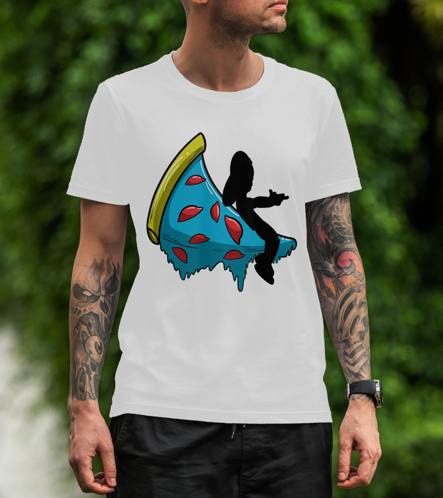 Picza Moon Silhouette On Blue Pizza Slice With Red Toppings T-Shirt