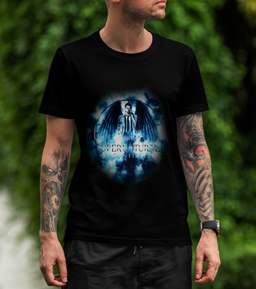 The Supernatural Castiel Angelic Aura T-shirt is designed for everyday wear and a consistent fit. Fabric is pre-shrunk ring-spun cotton with durable stitching. See the size chart below for exact measurements.