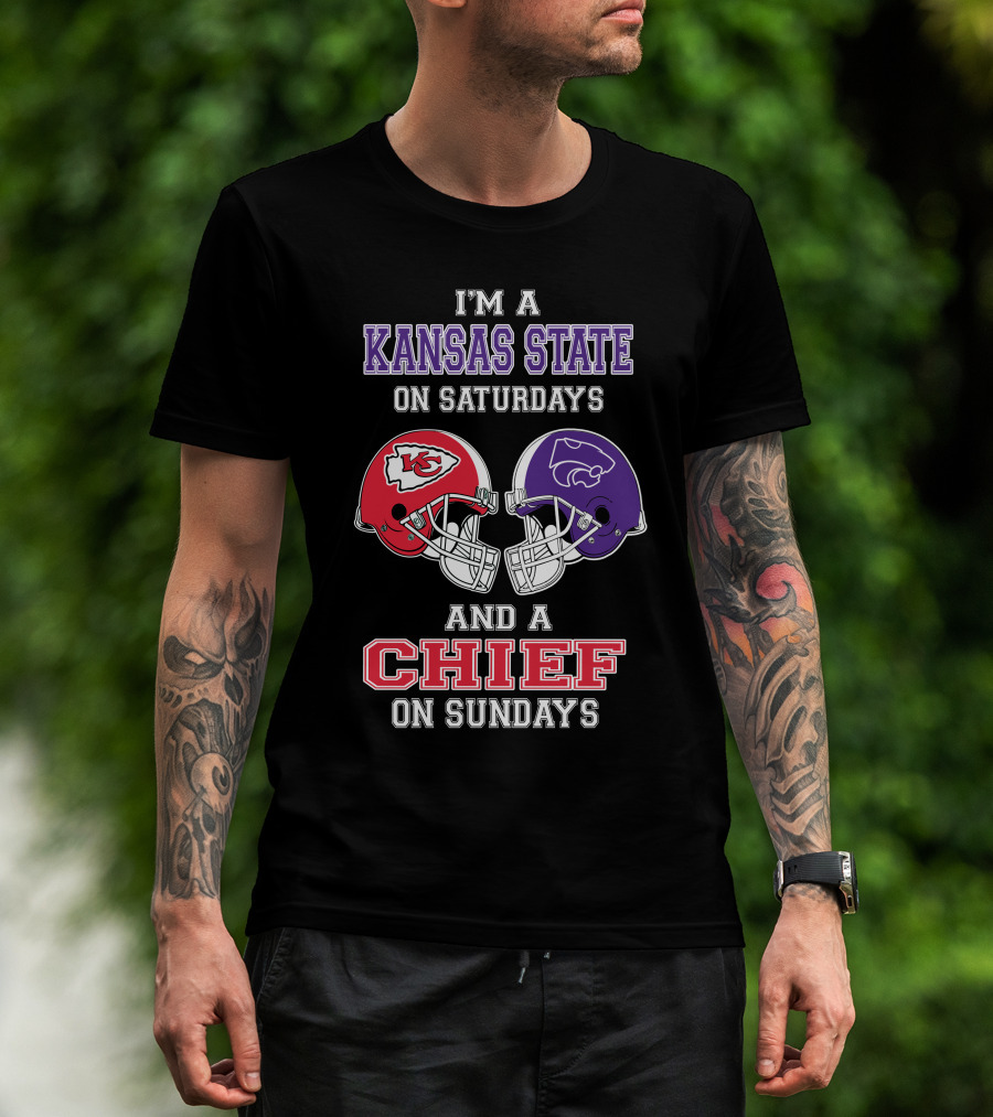 Kansas State Saturdays Chiefs Sundays Football Helmets T-Shirt