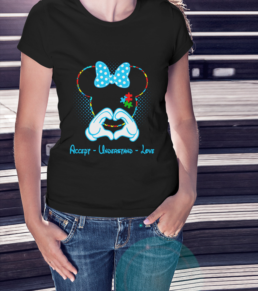Minnie Mouse Puzzle Bow Accept Understand Love Autism Awareness T-Shirt