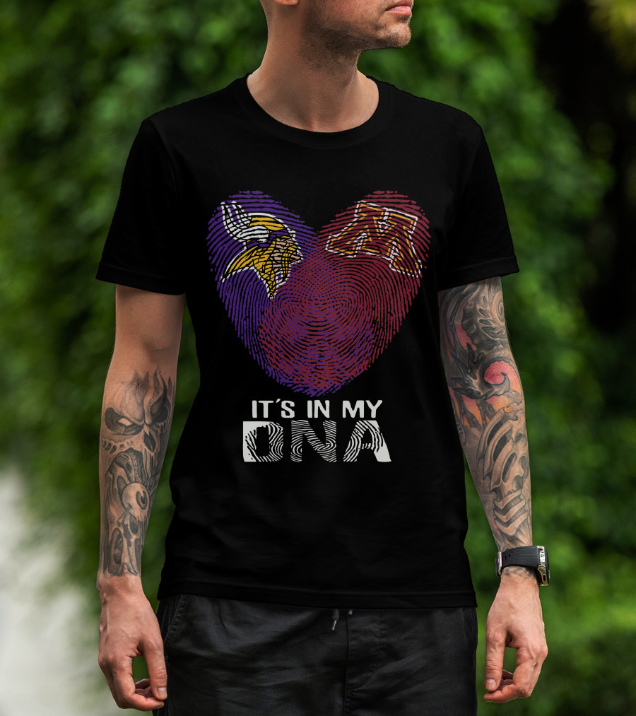 Minnesota Vikings Minnesota Golden Gophers It's In My DNA Heart Fingerprint T-Shirt