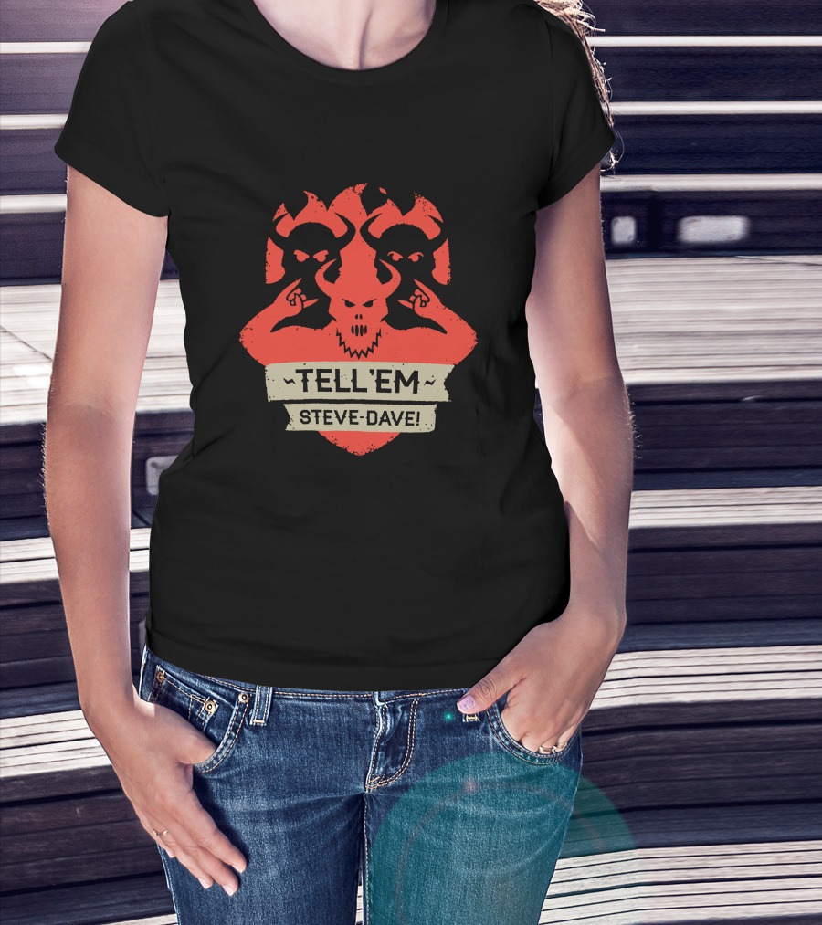 Tell Em Steve Dave Red Demonic Shield T-Shirt
