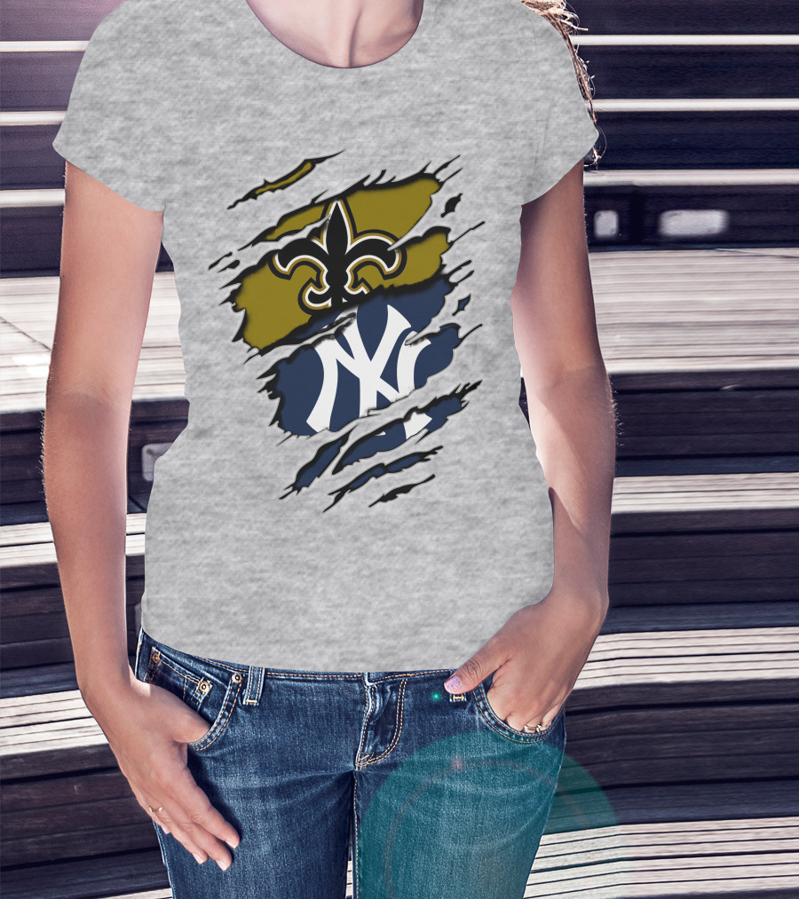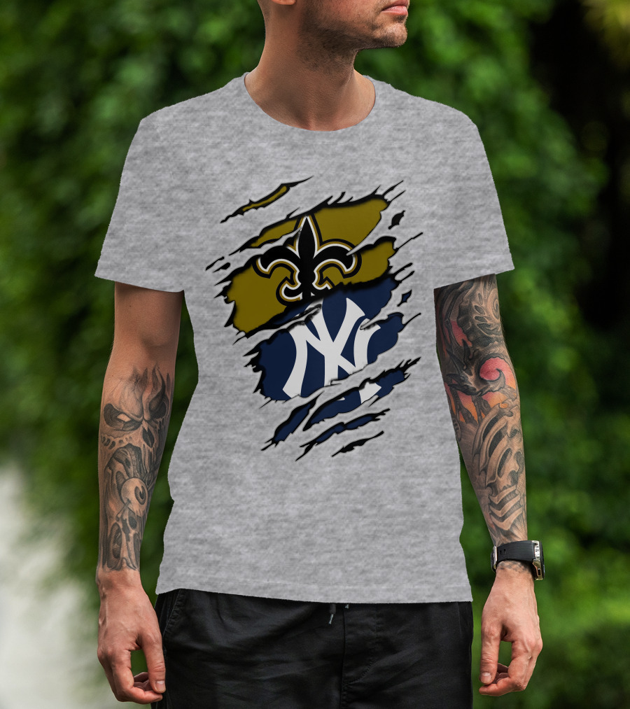 Saints Yankees Fleur-de-Lis And Interlocking NY Symbol Torn T-Shirt