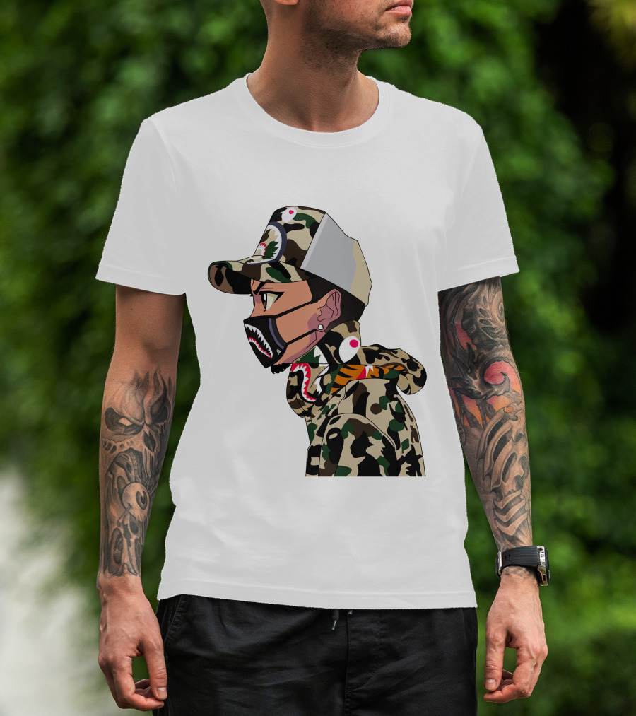 The Boondocks GT Camo Shark Face Mask Hat Hoodie Anime T-Shirt