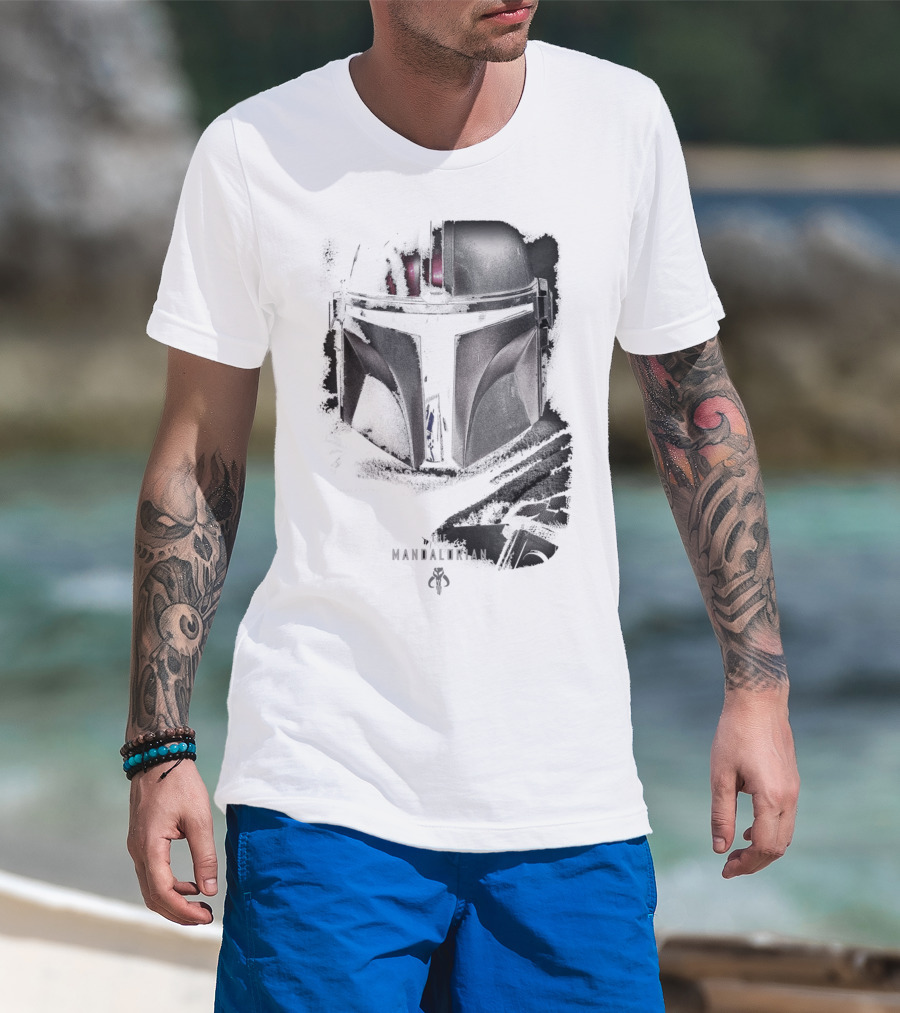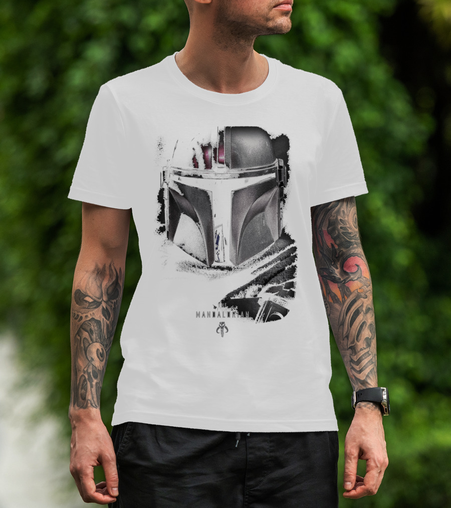 Mysterious Shiny Mandalorian Helmet With Mythosaur T-Shirt