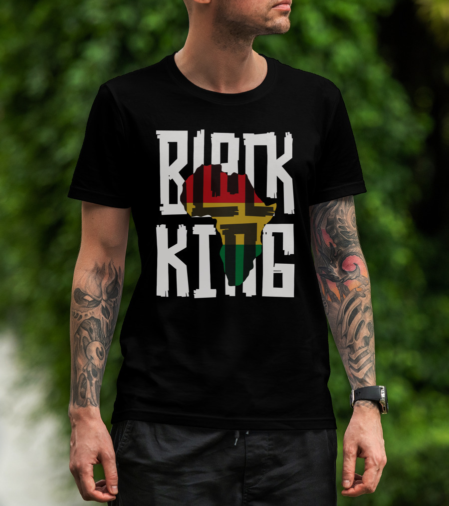 The Black King Africa Map Red Yellow Green T-shirt is designed for everyday wear and a consistent fit. Fabric is pre-shrunk ring-spun cotton with durable stitching. See the size chart below for exact measurements.