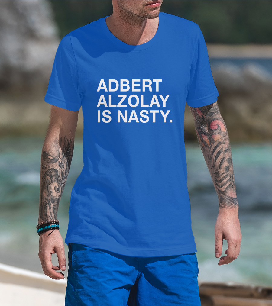 The Adbert Alzolay Is Nasty T-shirt is designed for everyday wear and a consistent fit. Fabric is pre-shrunk ring-spun cotton with durable stitching. See the size chart below for exact measurements.