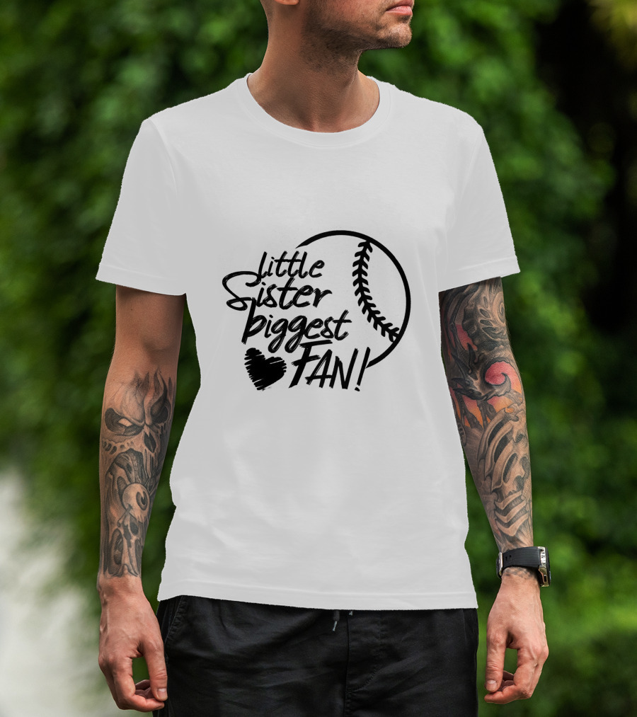 Little Sister Biggest Fan Baseball Heart T-Shirt