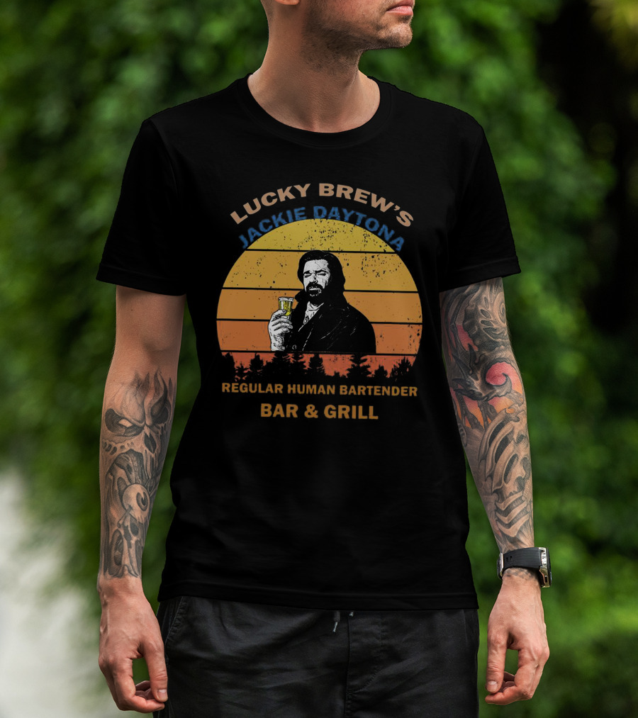 Lucky Brew's Jackie Daytona Regular Human Bartender Bar And Grill T-Shirt