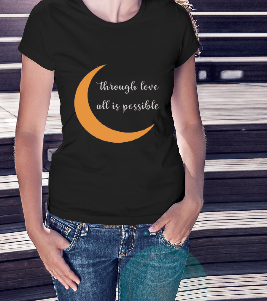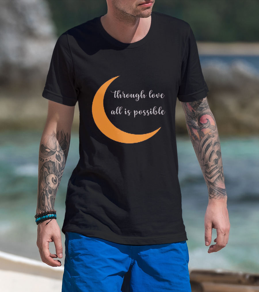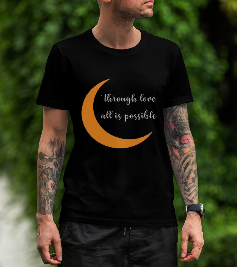 The Through Love All Is Possible Moon T-shirt is designed for everyday wear and a consistent fit. Fabric is pre-shrunk ring-spun cotton with durable stitching. See the size chart below for exact measurements.