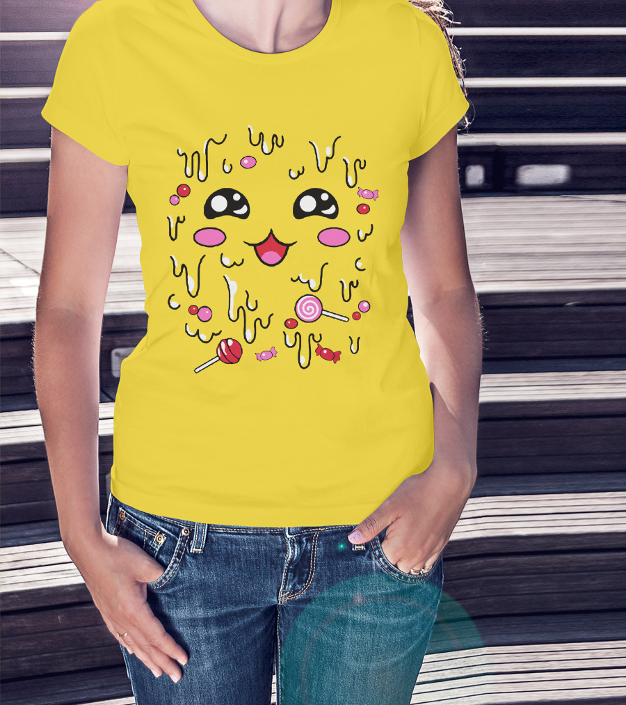 Newscapepro Merch Kawaii Candy Face With Lollipops And Sweets T-Shirt