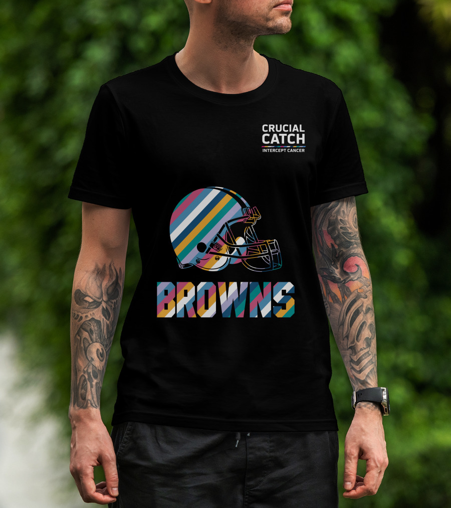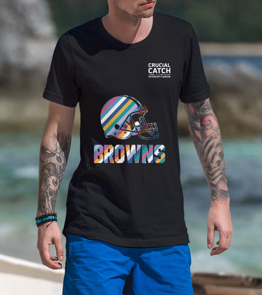 Browns Crucial Catch Intercept Cancer Helmet Stripes T-Shirt