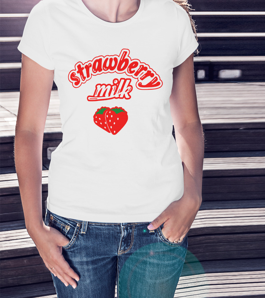 Strawberry Milk Red Text With Strawberries T-Shirt