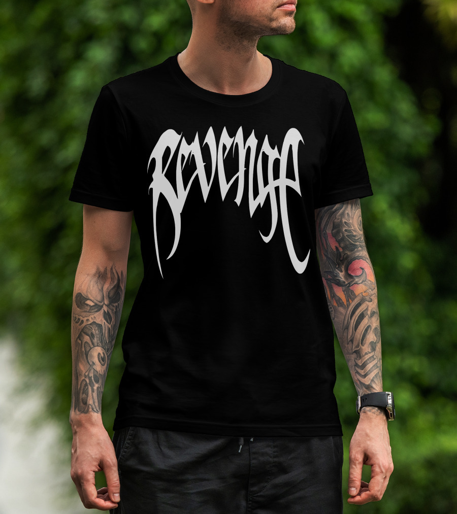The Revenge Collection Bold Gothic Text T-shirt is designed for everyday wear and a consistent fit. Fabric is pre-shrunk ring-spun cotton with durable stitching. See the size chart below for exact measurements.