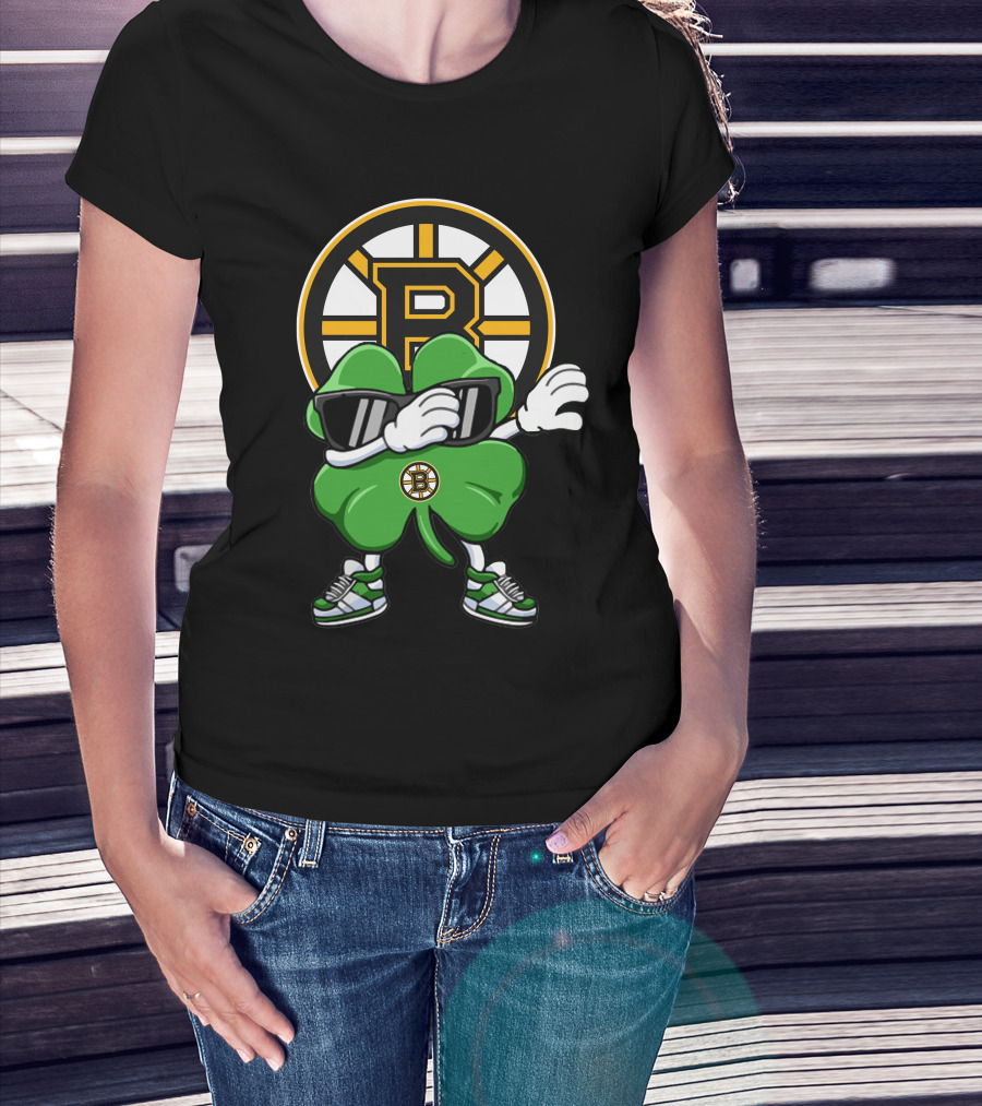 Boston Bruins Clover Dab Hockey Luck T-Shirt