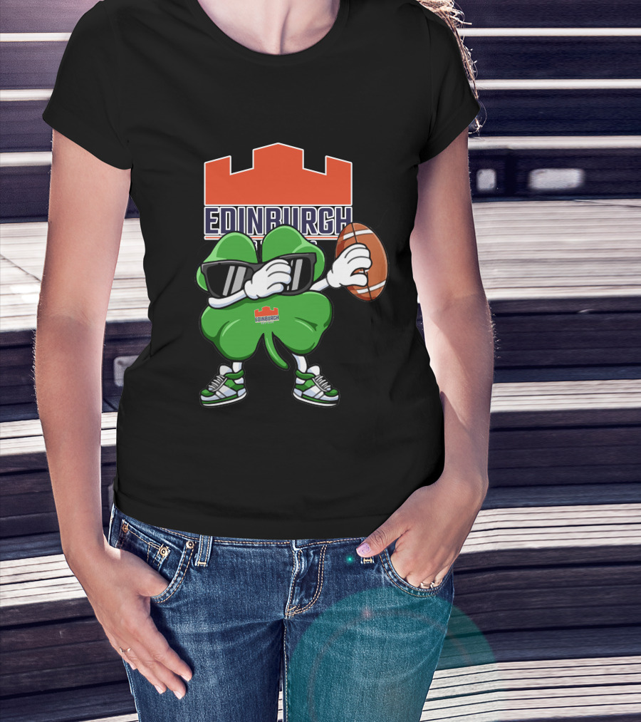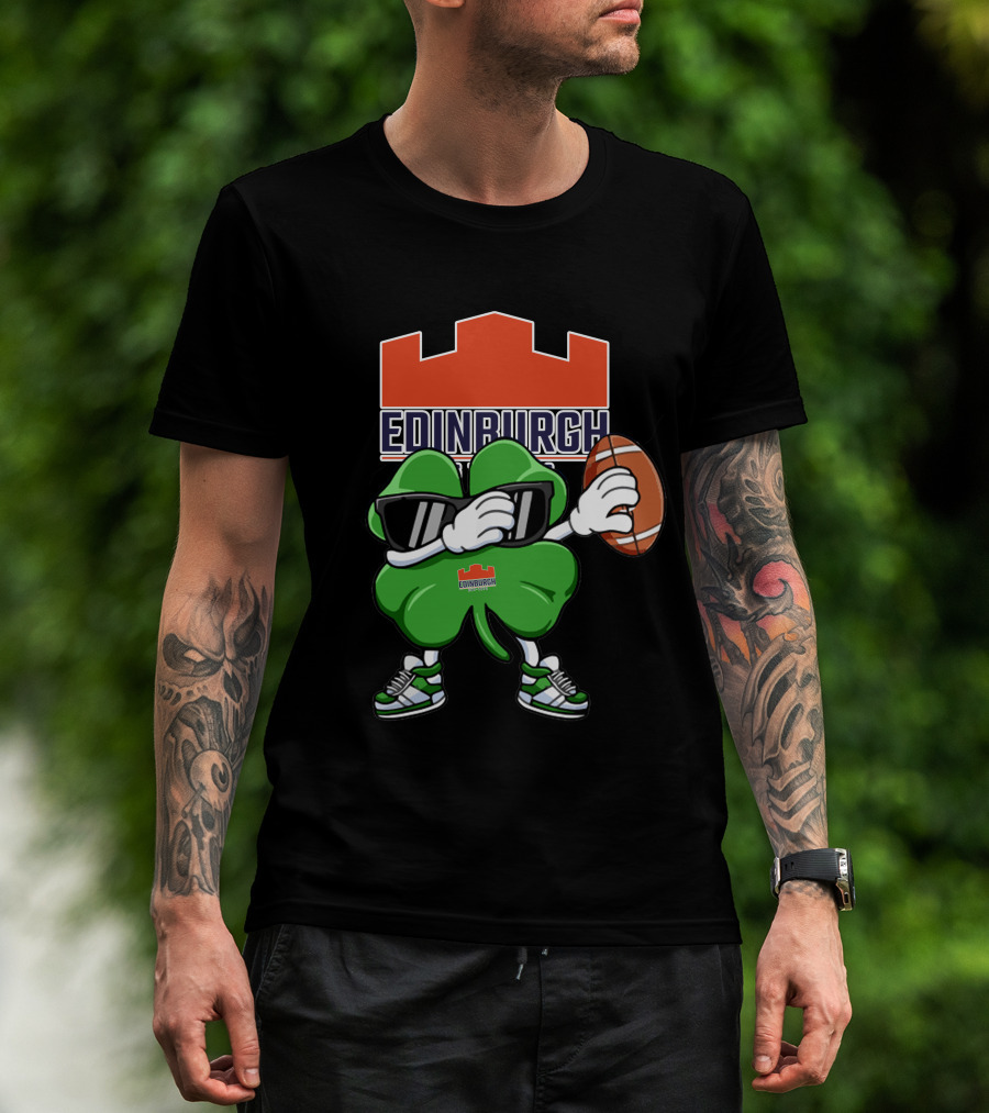 Edinburgh Rugby Clover Holding Rugby Ball With Sunglasses And Sneakers T-Shirt