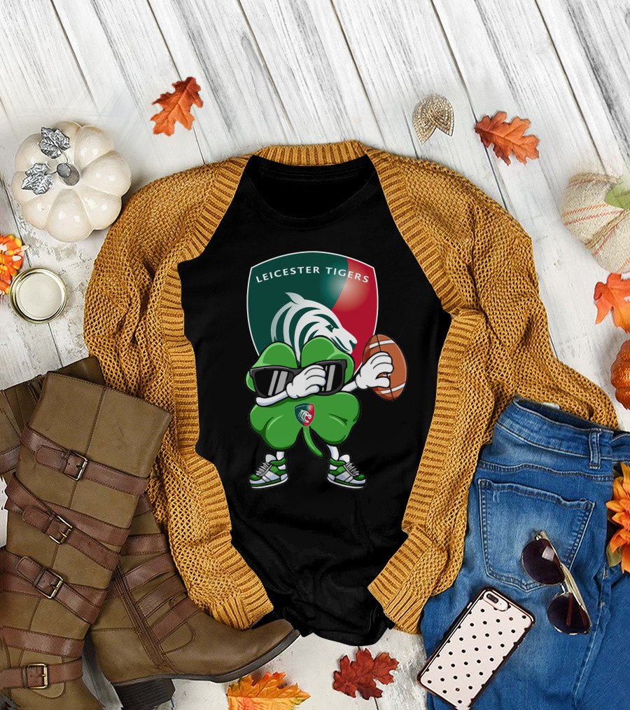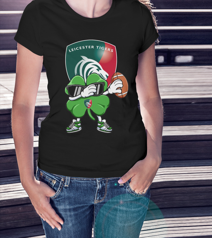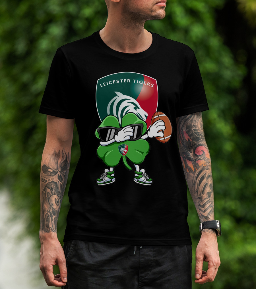 Leicester Tigers Shamrock Mascot Holding Rugby Ball T-Shirt