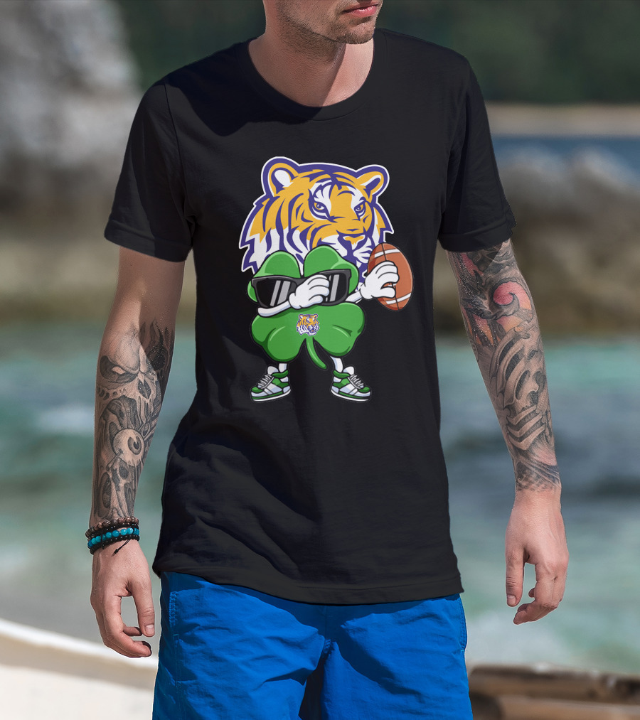 LSU Football Tiger And Shamrock With Football T-Shirt