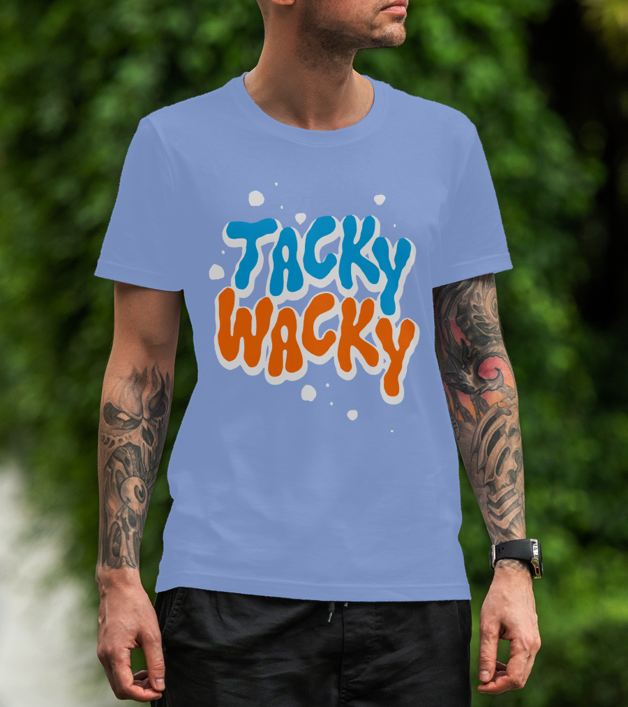 The Tacky Wacky Merch Tiko T-shirt is designed for everyday wear and a consistent fit. Fabric is pre-shrunk ring-spun cotton with durable stitching. See the size chart below for exact measurements.