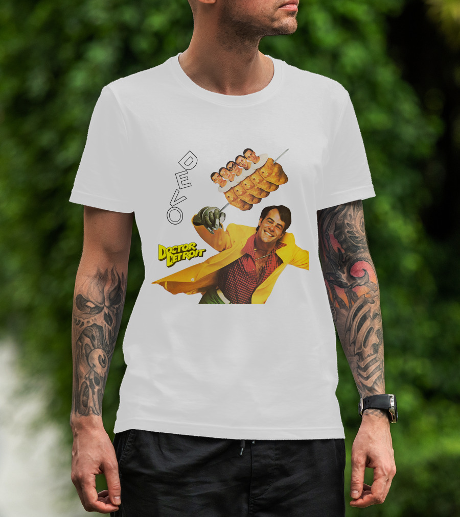 DEVO Doctor Detroit Theme Hot Dog Skewer Image T-Shirt