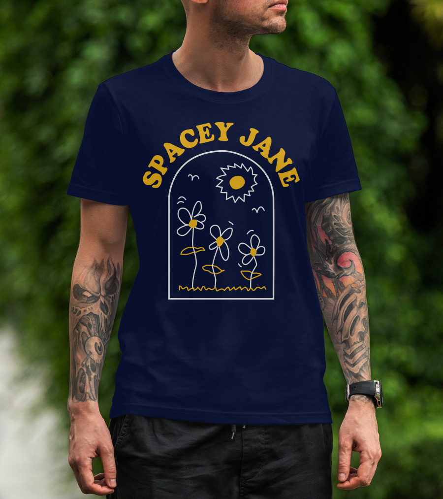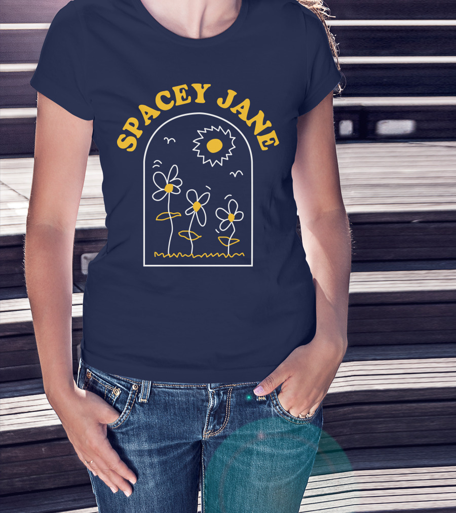 The SPACEY JANE SUNFLOWER MEADOW ARCHWAY T-shirt is designed for everyday wear and a consistent fit. Fabric is pre-shrunk ring-spun cotton with durable stitching. See the size chart below for exact measurements.