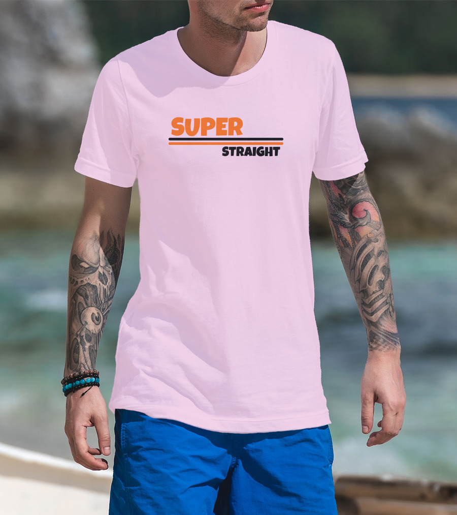 The Super Straight Shop Pink Background T-shirt is designed for everyday wear and a consistent fit. Fabric is pre-shrunk ring-spun cotton with durable stitching. See the size chart below for exact measurements.