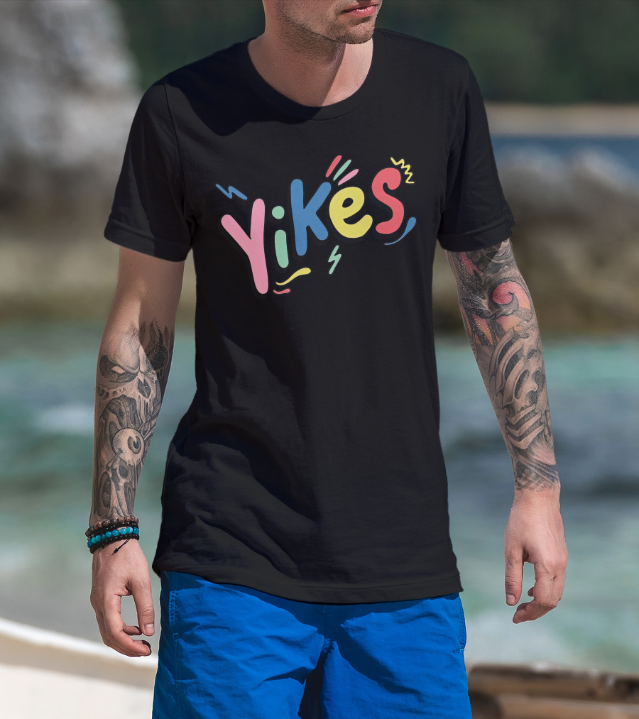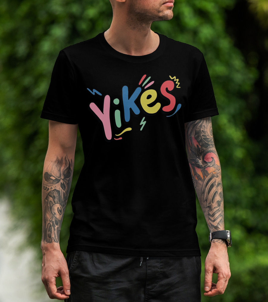 The Colorful Yikes Merch Vibrant Lettering T-shirt is designed for everyday wear and a consistent fit. Fabric is pre-shrunk ring-spun cotton with durable stitching. See the size chart below for exact measurements.