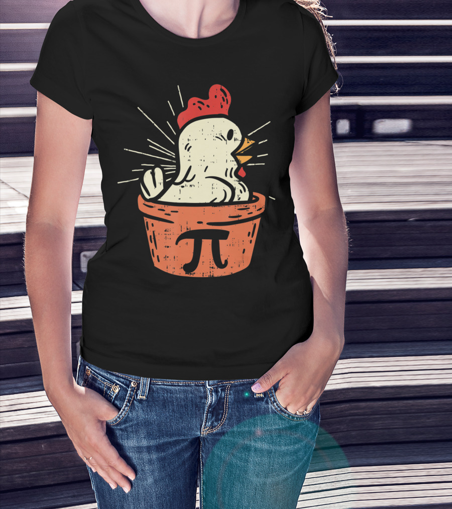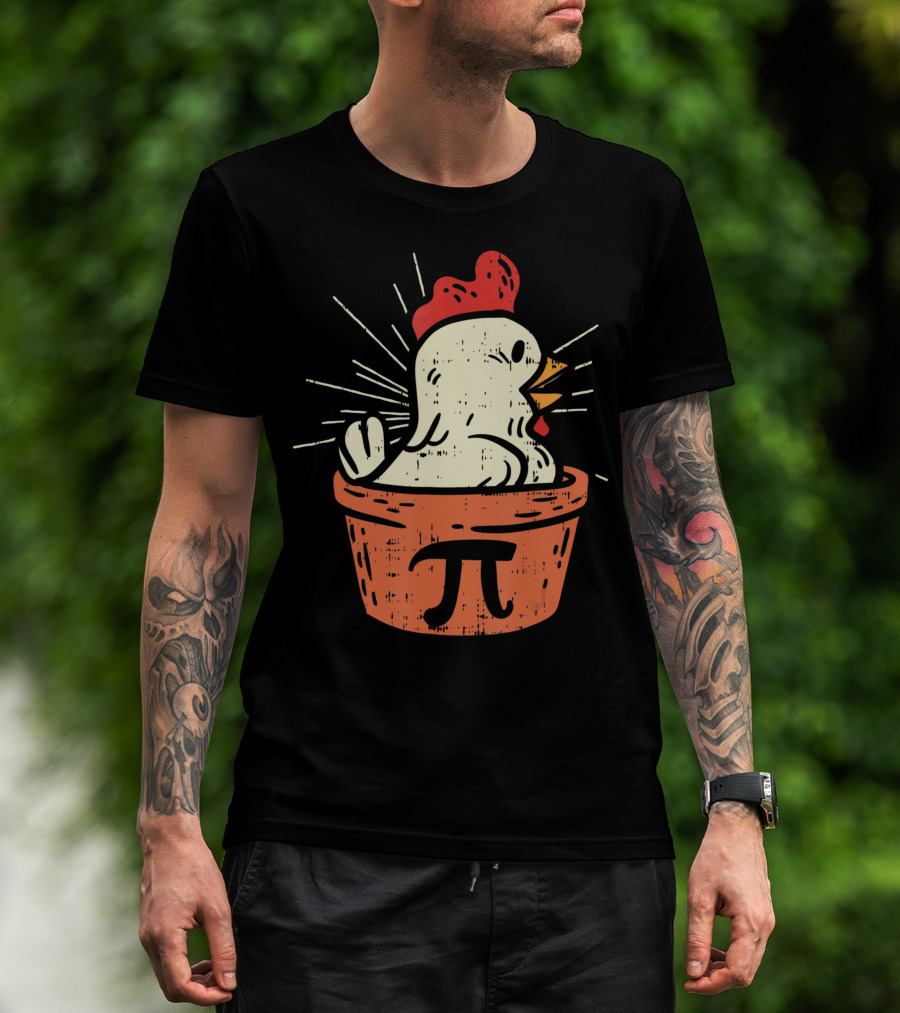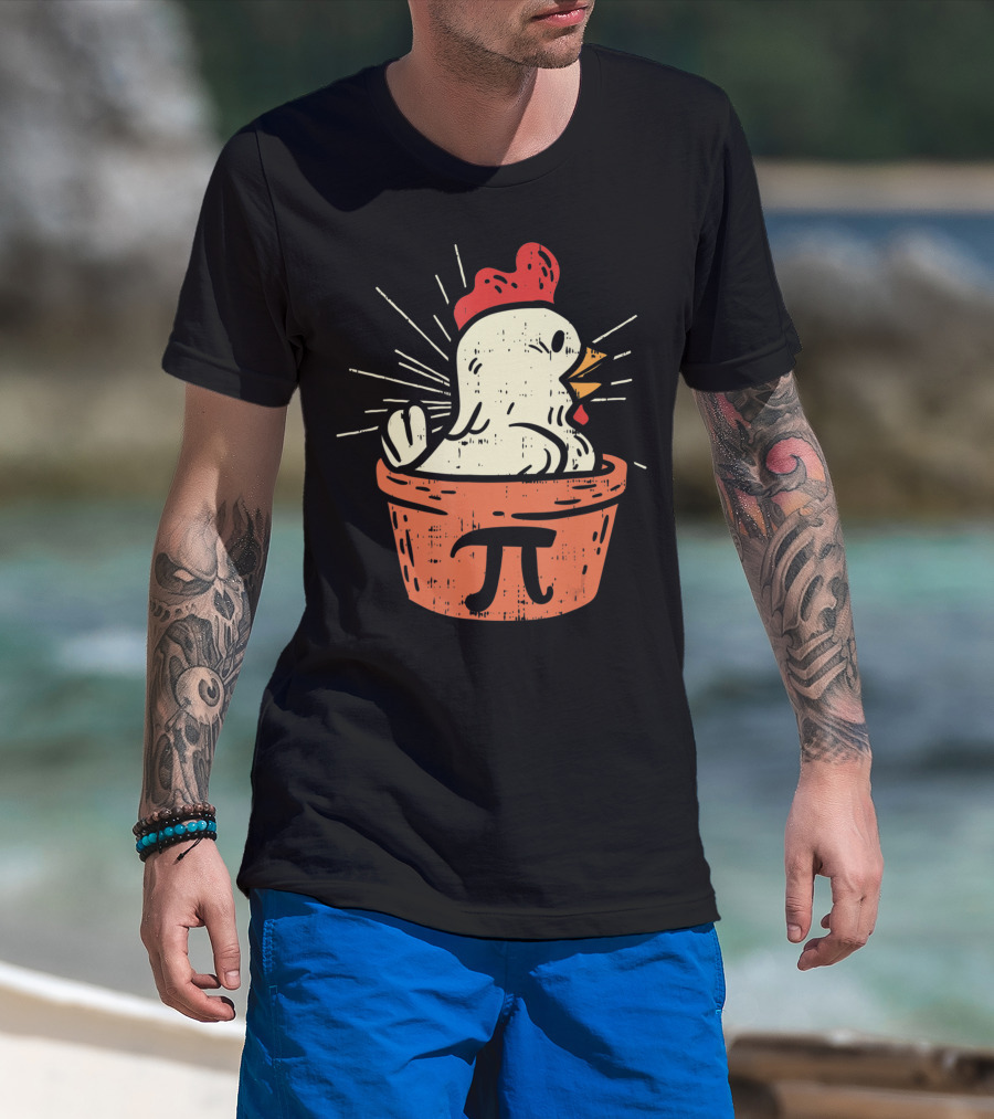 Chicken Pot Pi Day Pie Math Lover Geek 3.14 Rooster In Pie With Pi T-Shirt