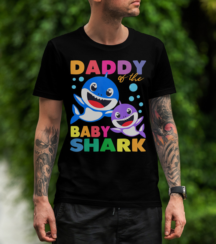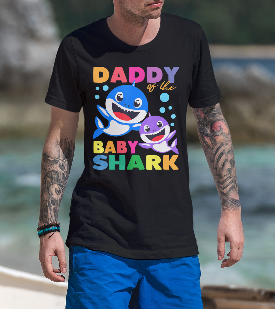 Daddy Of The Baby Shark Birthday Boy Girl Kids Daddy Shark T-Shirt